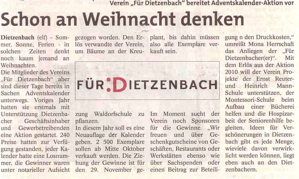 | Dietzenbacher Stadtpost - 15.07.2010 | Schon an Weihnachten denken | Weiterlesen... |