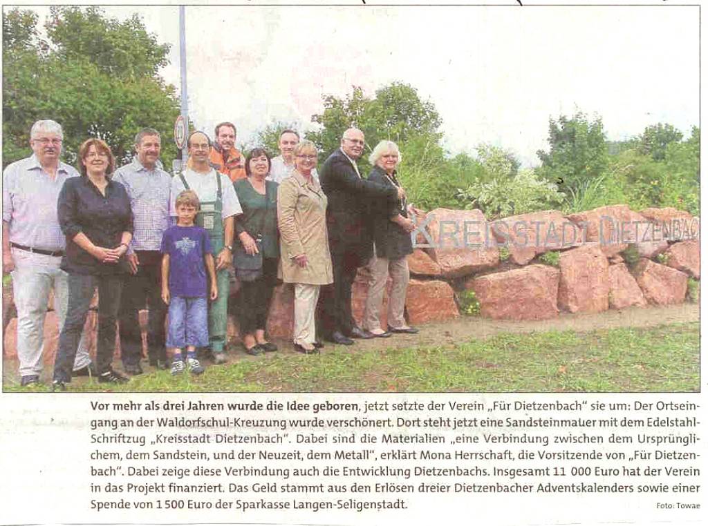 | Offenbach Post - 16.11.2010 | 2000 Euro in die Präsentation der Stele am Ortseingang investiert | Weiterlesen... |