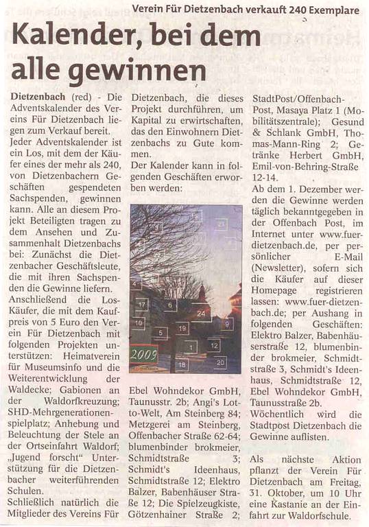 | Dietzenbacher Stadtpost - 29.10.2009 | Kalender, bei dem alle gewinnen | Weiterlesen... |