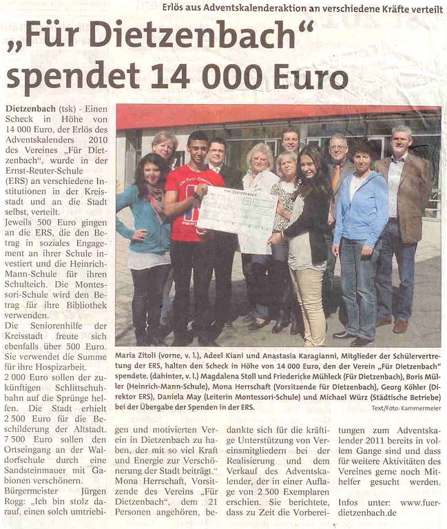 | Dietzenbacher Stadtpost - 31.03.2011 | "Für Dietzenbach" spendet 14 000 Euro | Weiterlesen... |