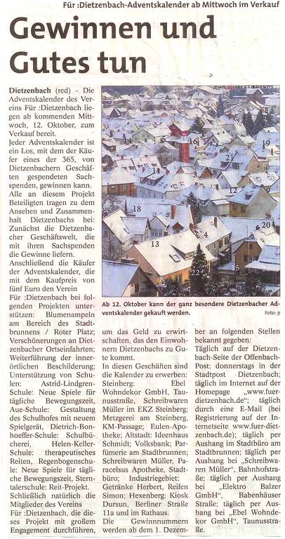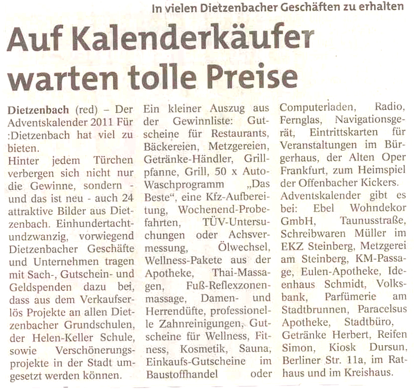 | Dietzenbacher Stadtpost - 27.10.2011 | Auf Kalenderkäufer warten tolle Preise | Weiterlesen... |