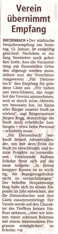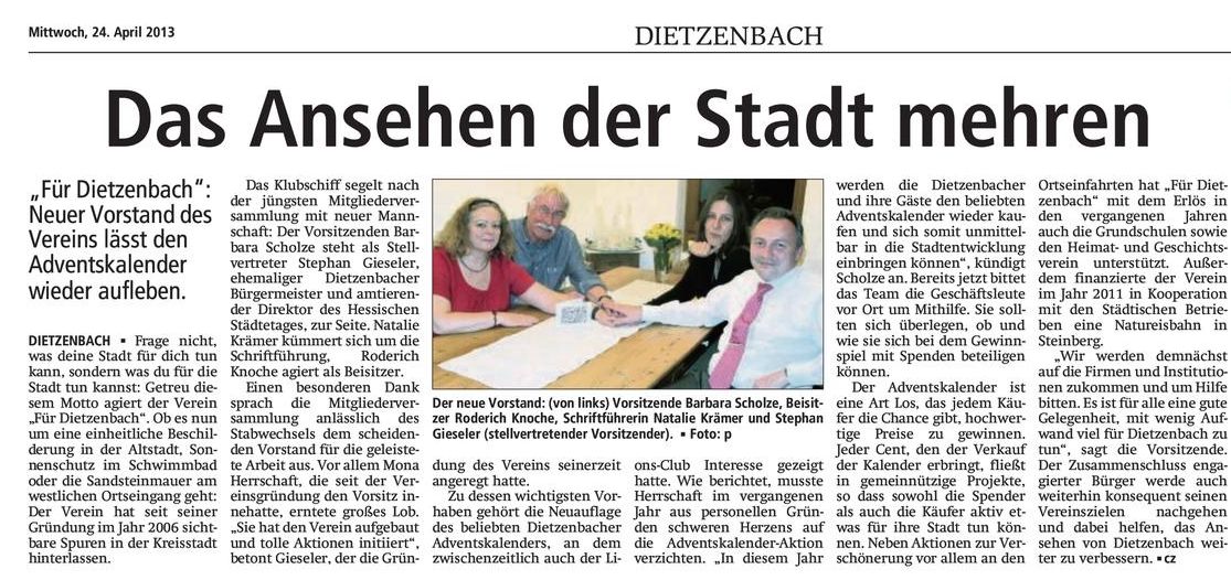 Die Aktivitäten des Vereins" Für Dietzenbach" im Spiegel der Presse: