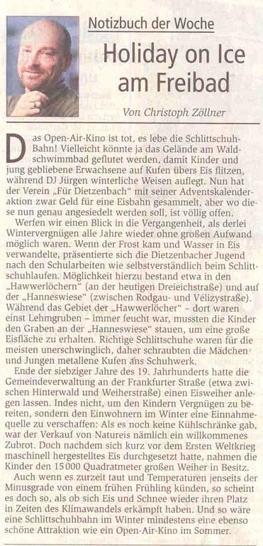 | Offenbach Post - 01.07.2010 | Kalte Träume für ein schöneres Dietzenbach | Weiterlesen... |