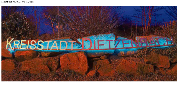 Die beiden Worte „Kreisstadt Dietzenbach“ erscheinen also mit Anbruch der Dunkelheit nun wechselweise in Grün, Blau, Lila, Rosa oder Rot.